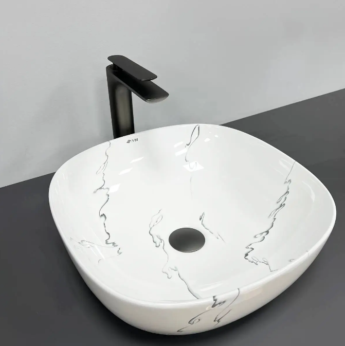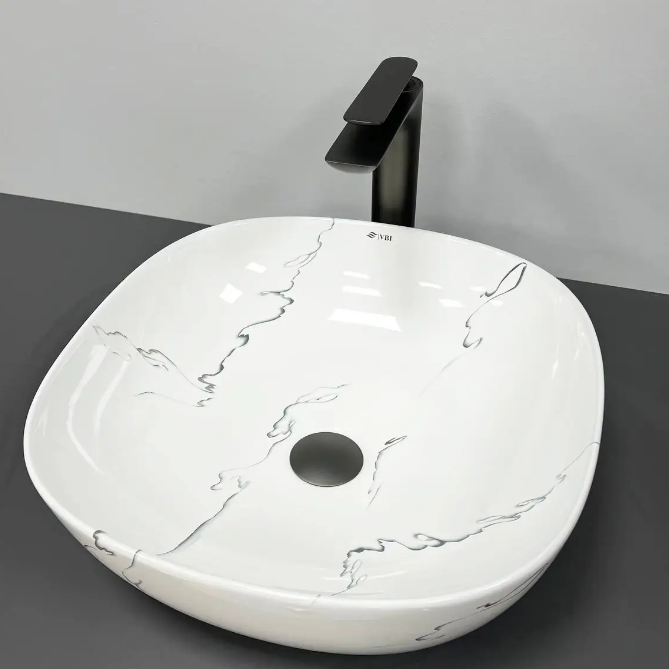 Раковина для ванної кімнати VBI BERGAMO S MARMO GLOSSY 42x41,5 см кераміка мармур VBI-012502
