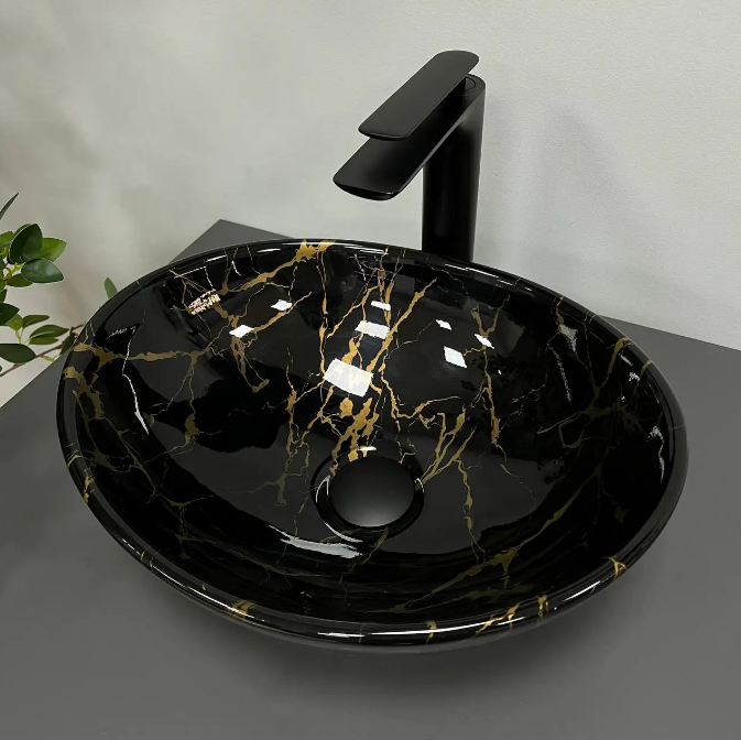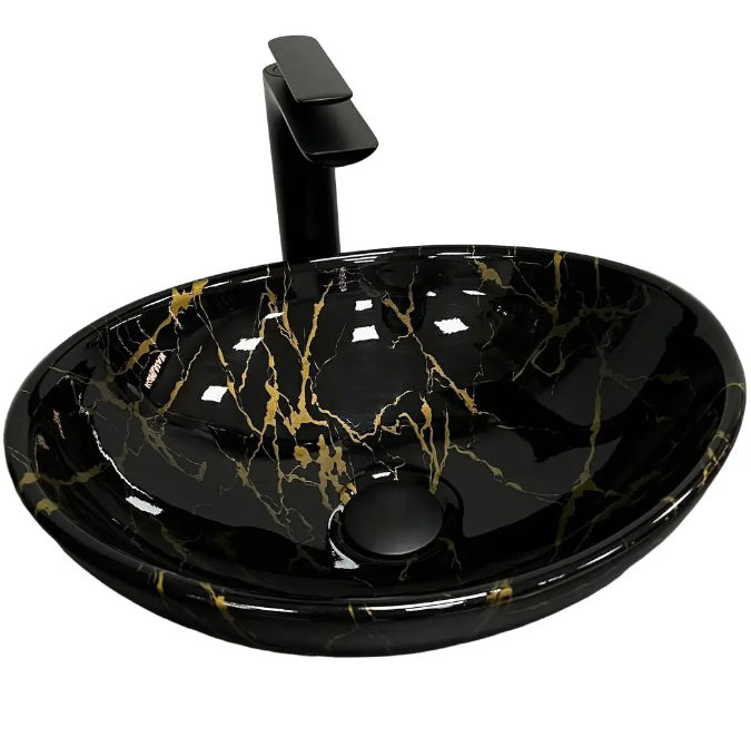 Раковина для ванної кімнати VBI PARMA 41,5x33,5 см кераміка чорний мармур глянсовий VBI-011004