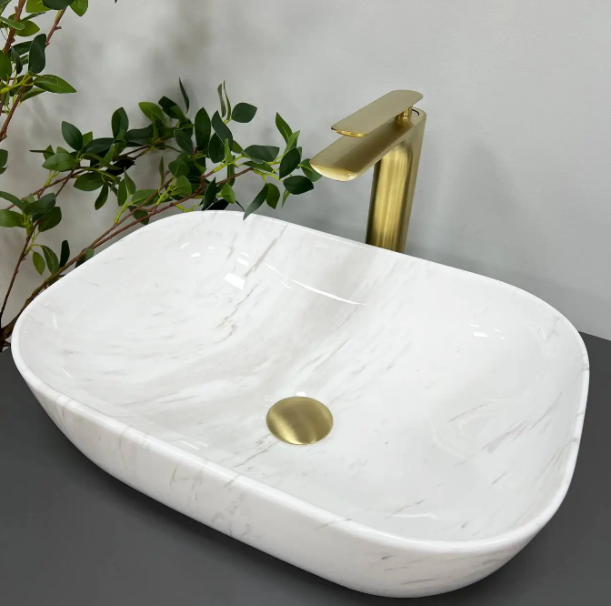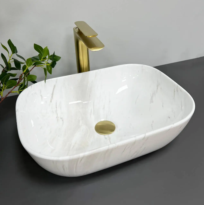 Раковина для ванної кімнати VBI RAVENNA 46x32,5 см кераміка природний мармур глянсовий VBI-011208