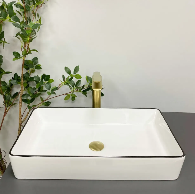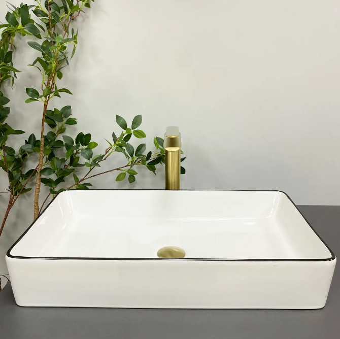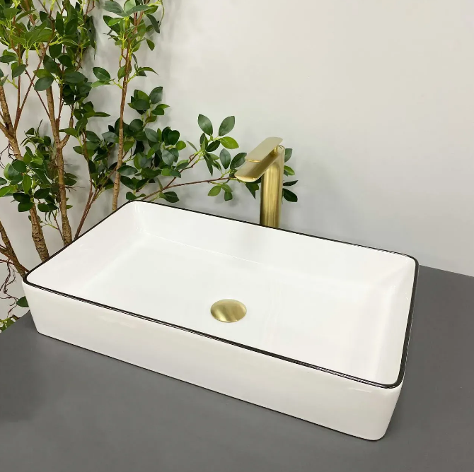 Раковина для ванної кімнати VBI TRIEST 61,5x35 см кераміка білий з чорною каймою VBI-012710