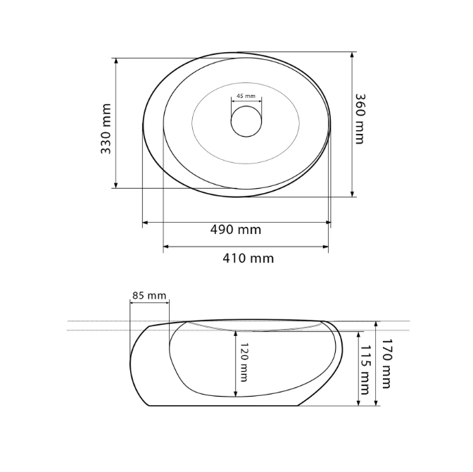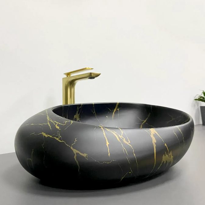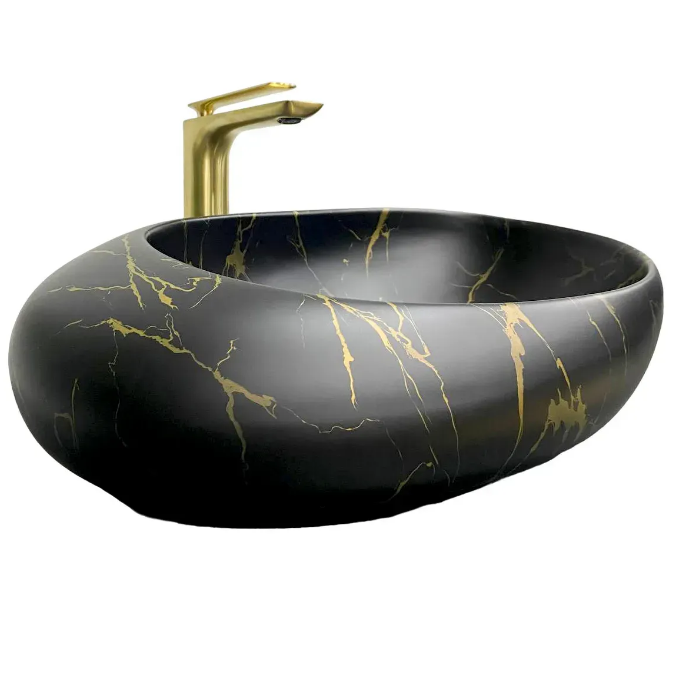Раковина для ванної кімнати VBI VALIANO 49x36 см кераміка мармур чорний матовий VBI-016101