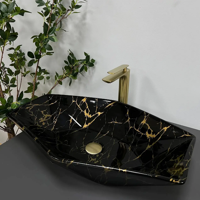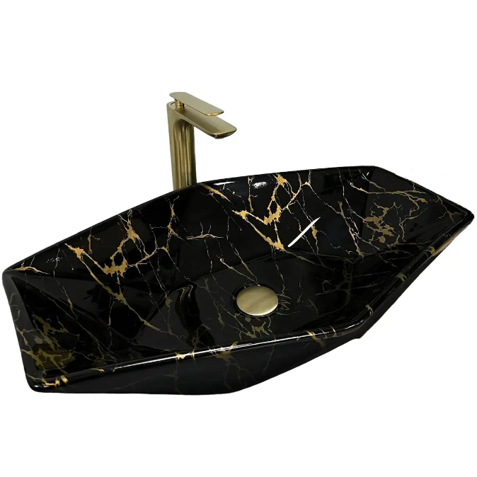 Раковина для ванної кімнати VBI VENEZIA 63,5x41 см кераміка чорний мармур глянсовий VBI-012405