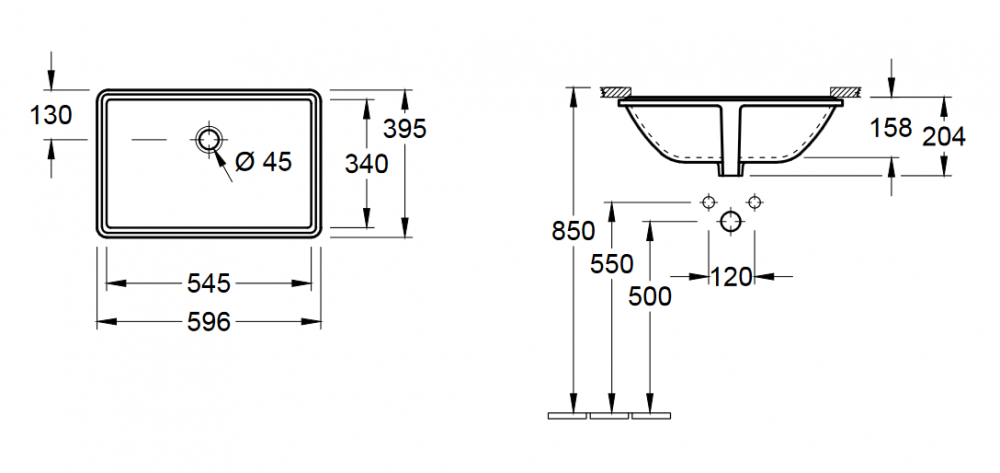 При використанні раковини під стільницю комбінація раковини та стільниці для ванної кімнати здається монолітною. На вибір пропонується кругла, овальна та прямокутна санітарна кераміка у різних тонах.