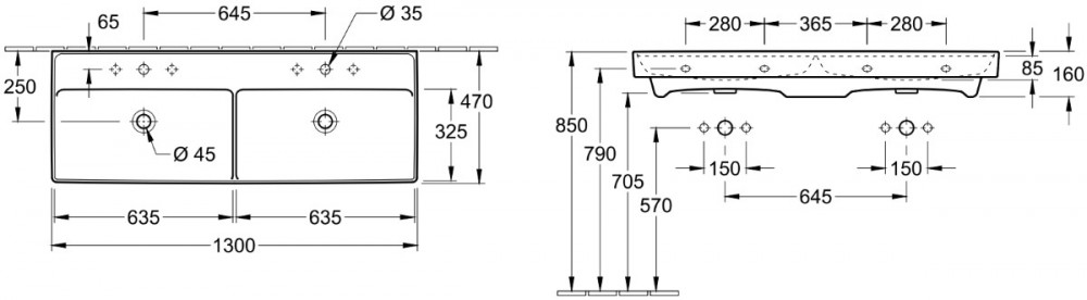 Роковина для ванної Villeroy & Boch Collaro 130x47 см подвійна, альпійський білий CeramicPlus