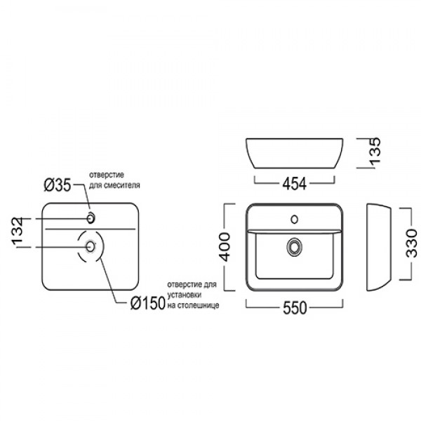 1) Раковина для ванної Kerama Marazzi Plaza 55x40 см кераміка білий