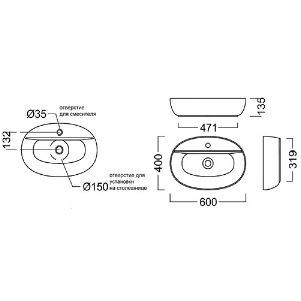 1) Раковина для ванної Kerama Marazzi Plaza 60x40 см кераміка білий