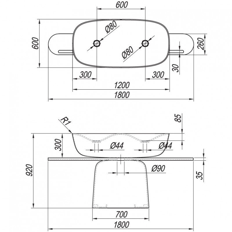 Роковина для ванної Kolpa San Milo 120x60 см подвійна окремостояща з сифоном Kerrock чорний/білий
