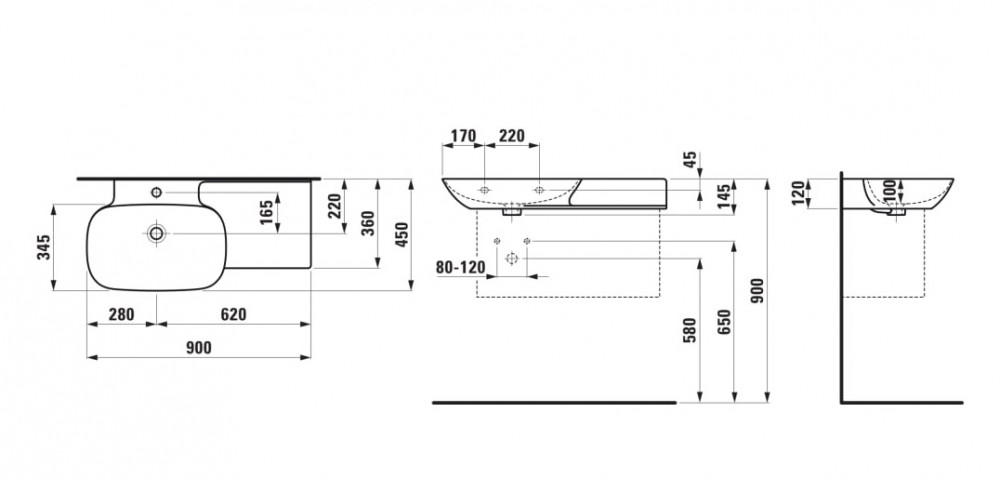 Раковина для ванної Laufen Ino 90х45 см без отворів полиця праворуч кераміка чорний матовий H8133027161091