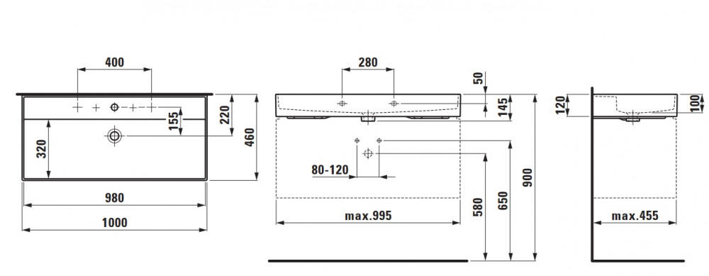 Роковина для ванної Laufen Kartell 100х46 см без отворів під змішувач кераміка графіт матовий