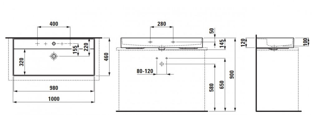 Роковина для ванної Laufen Kartell 100х46 см без отворів шліфована кераміка білий матовий
