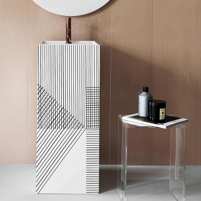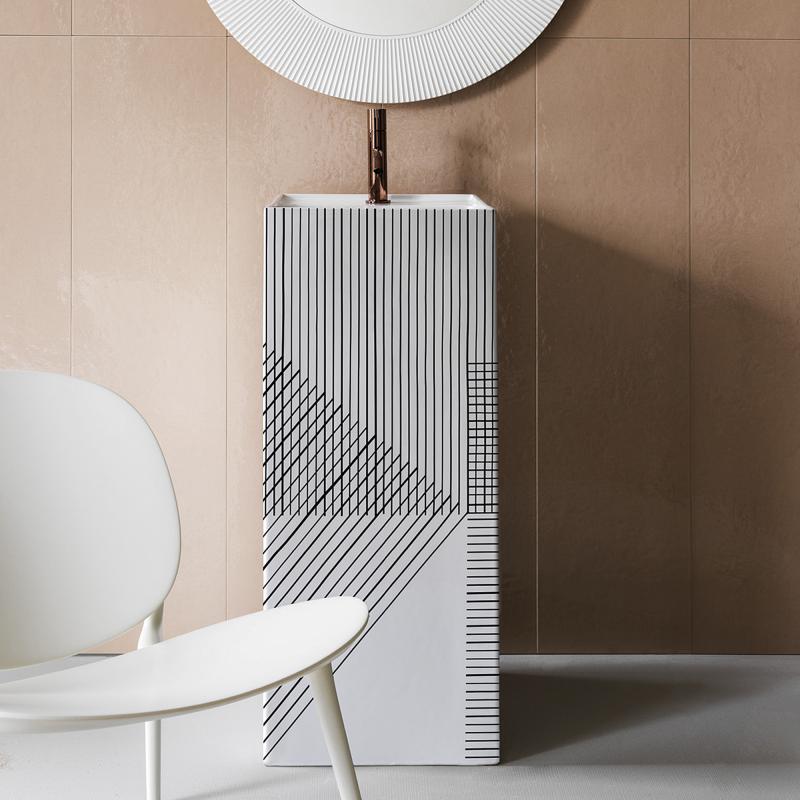 Роковина для ванної Laufen Kartell 37,5х43,5 см підлогова з 1 отвором кераміка сірий з лінійним декором