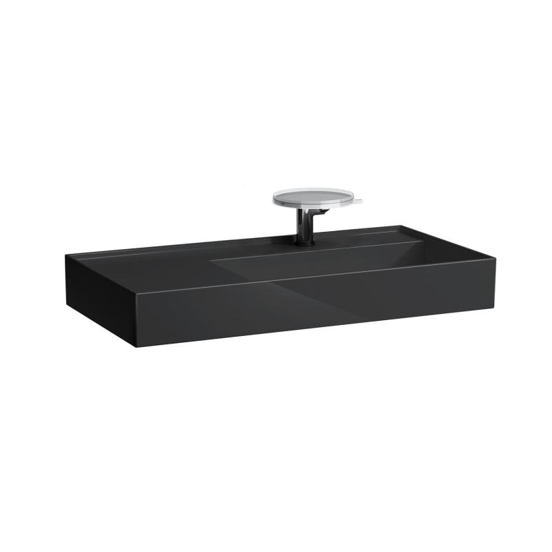 Раковина для ванної Laufen Kartell 90х46 см полиця зліва з 1 отвором кераміка чорний глянсовий H8103390201111