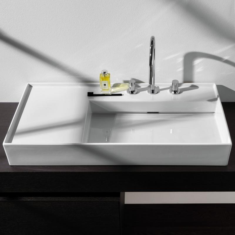 Роковина для ванної Laufen Kartell 90х46 см полиця зліва з 3 отворами кераміка білий з покриттям LCC