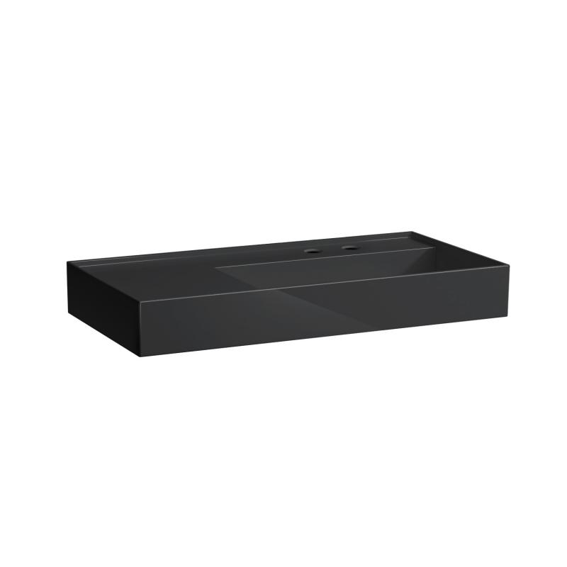 Раковина для ванної Laufen Kartell 90х46 см полиця зліва з 2 отворами кераміка чорний глянсовий H8103390208151