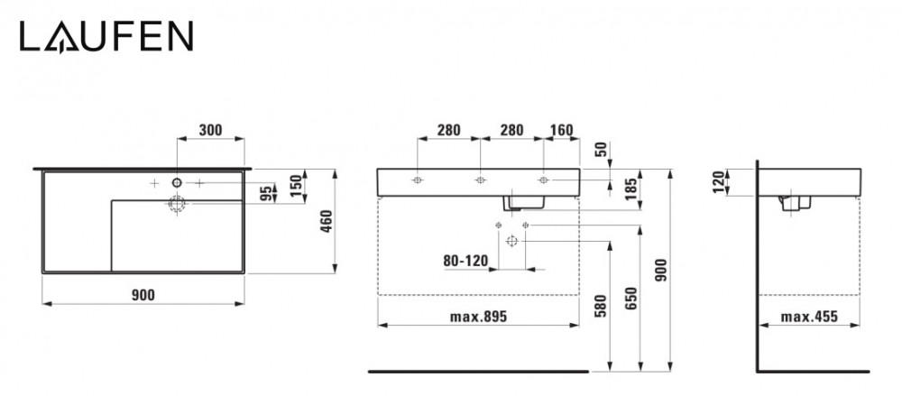 Раковина для ванної Laufen Kartell 90х46 см полиця зліва з 2 отворами кераміка сірий матовий H8103397598151