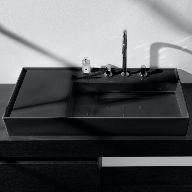 Роковина для ванної Laufen Kartell 90х46 см з 1 отвором полиця зліва шліфована кераміка чорний глянцевий