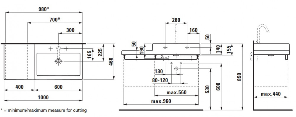 Роковина для ванної Laufen Living 100х46 см без отворів полиця зліва кераміка білий