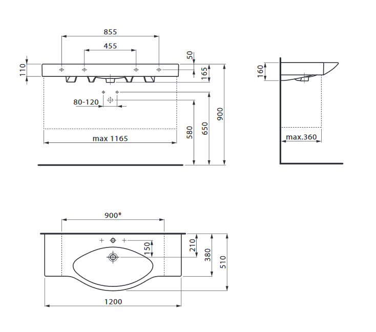 1) Раковина для ванної Laufen Palace 120х51 см подрізна з одного боку білий