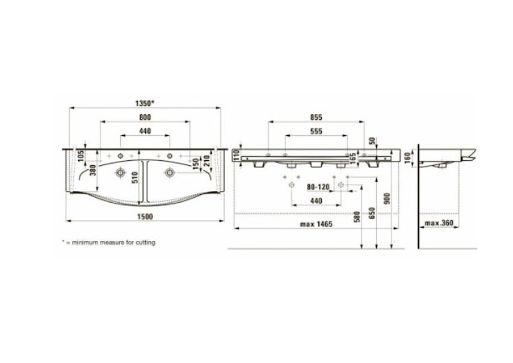 1) Раковина для ванної Laufen Palace 150х51 см з полотенцедержателем білий