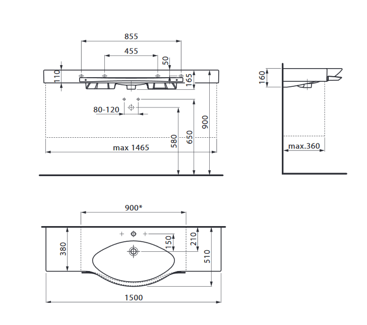 1) Раковина для ванної Laufen Palace 150х51 см з полотенцедержателем білий