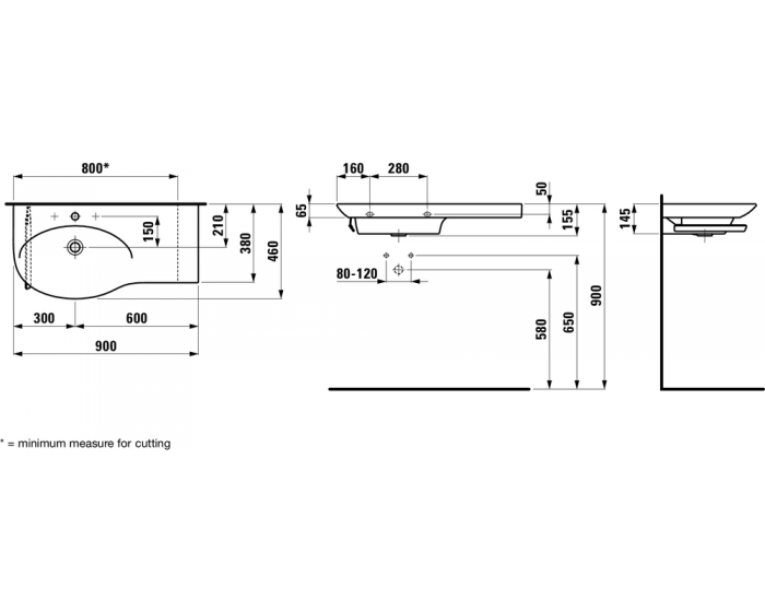 1) Раковина для ванної Laufen Palace 90х46 см з інтегрованою керамічної полицею справа