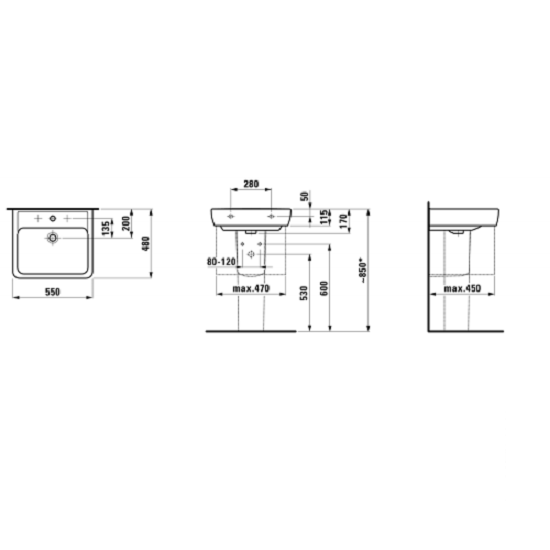 1) Раковина для ванної Laufen Pro А 55х48 см накладна зверху білий з покриттям LCC