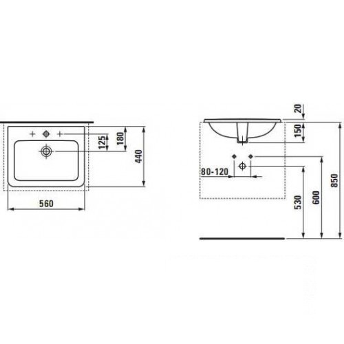 Раковина для ванної Laufen Pro A напів вбудована 56 см білий глянсовий H8129610001041