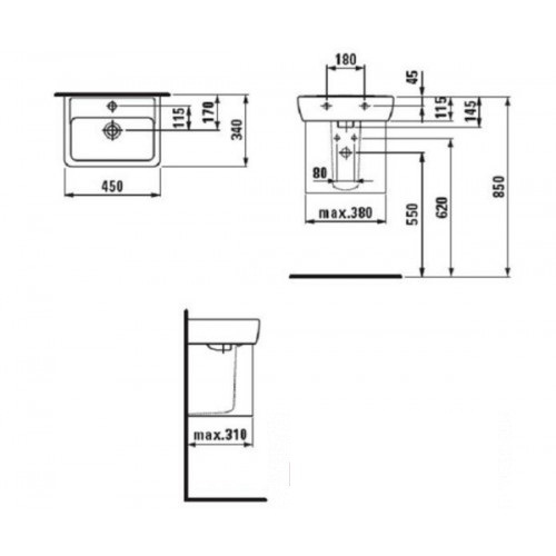 Раковина для ванної Laufen Pro A підвісна 45 см білий H8119514001041