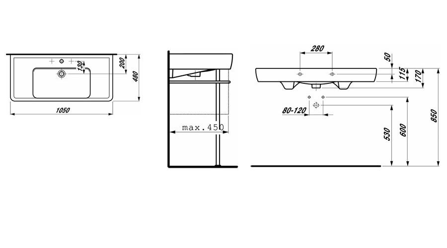 1) Раковина для ванної Laufen Pro A підвісна 105 см білий