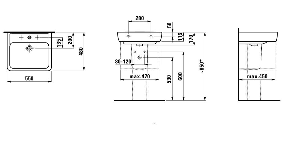Раковина для ванної Laufen Pro A підвісна 55 см білий