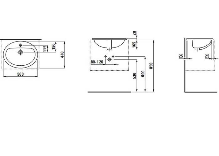 1) Раковина для ванної Laufen Pro B 56х44 см вбудована зверху білий з покриттям LCC