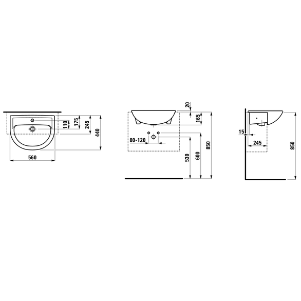 1) Раковина для ванної Laufen Pro B 56х44 см полувстраіваемие білий з покриттям LCC