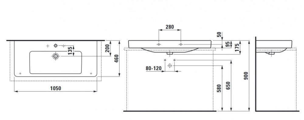 Роковина для ванної Laufen Pro S 105х46,5 см без отворів шліфована кераміка білий з покриттям LCC