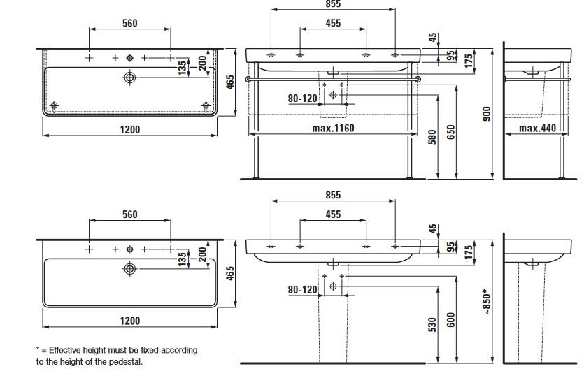 Роковина для ванної Laufen Pro S 120х46,5 см без отворів кераміка білий