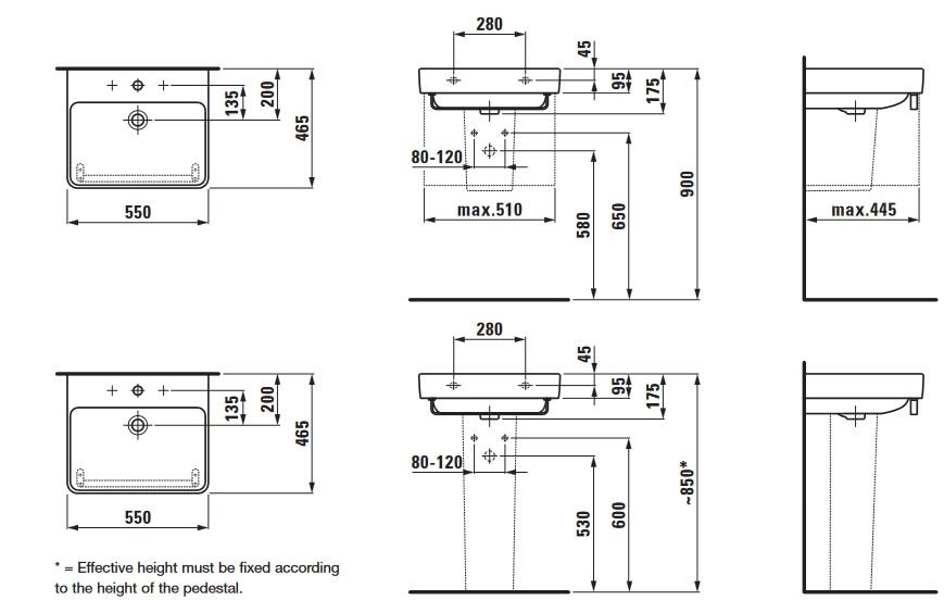 Роковина для ванної Laufen Pro S 55х46,5 см з 3 отворами кераміка білий