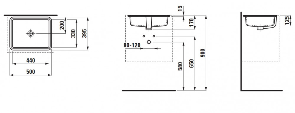 Раковина для ванної Laufen Savoy 50х39,5 см під стільницю шліфований низ кераміка білий H8189480001091