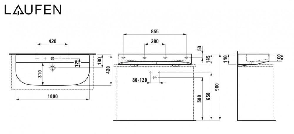 Раковина для ванної Laufen Sonar 100х42 см з 1 отвором шліфований низ кераміка білий з покриттям LCC H8163474001561