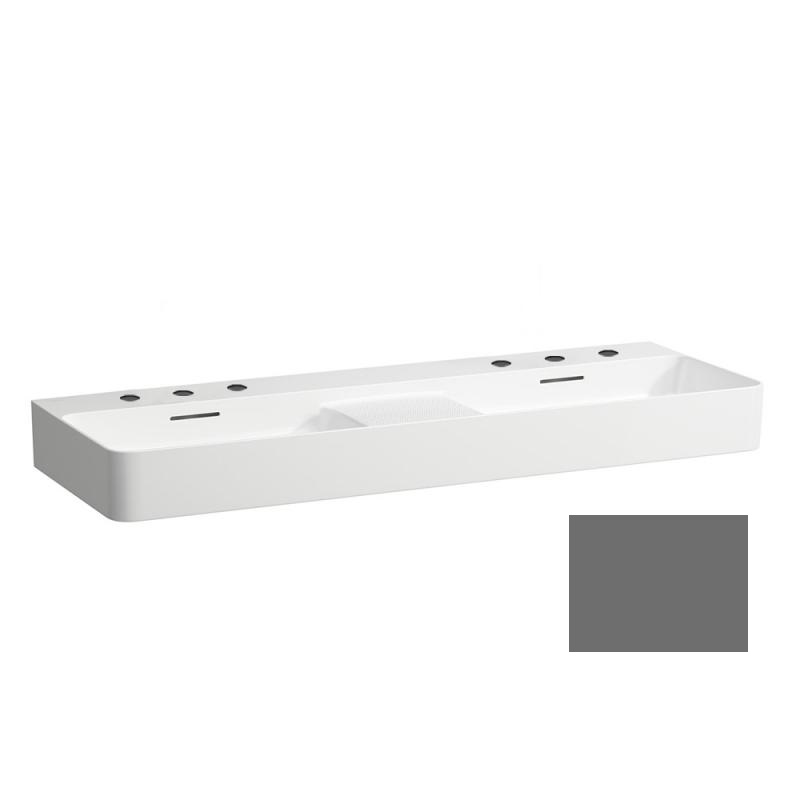Роковина для ванної Laufen Val 120х42 см подвійна з 3 отворами для кожної чаші кераміка графіт матовий