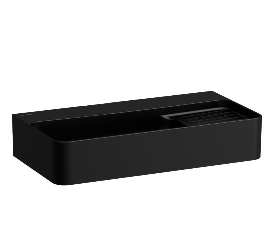 Роковина для ванної Laufen Val 60х31 см без отворів з полицею праворуч кераміка чорний матовий