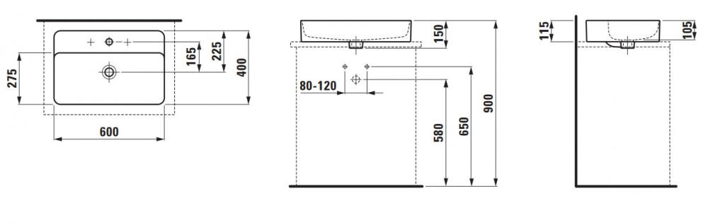 Раковина для ванної Laufen Val 60х40 см із 3 отворами кераміка графіт матовий H8122857581081