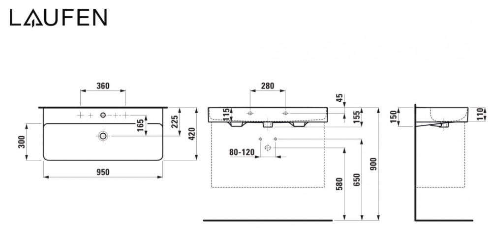 Раковина для ванної Laufen Val 95х42 см з 1 отвором білий кераміка з покриттям LCC H8102874001111