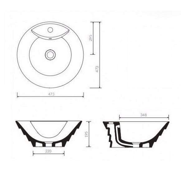 1) Раковина для ванної Marmorin Caro накладна без крила литий камінь білий