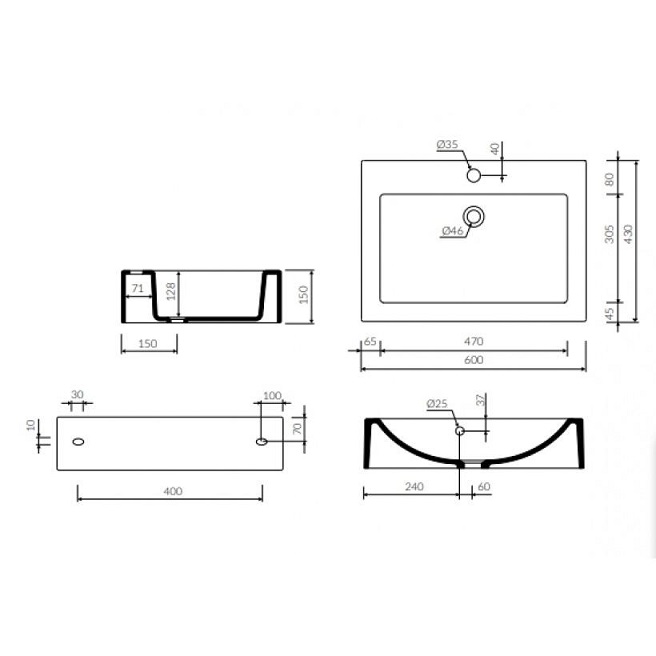 Раковина для ванної Marmorin Ceto 600 універсальна литий камінь білий 170 060 020 xx x