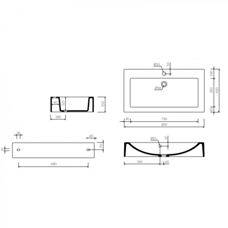 Раковина для ванної Marmorin Ceto 800 універсальна литий камінь білий 170 080 020 xx x