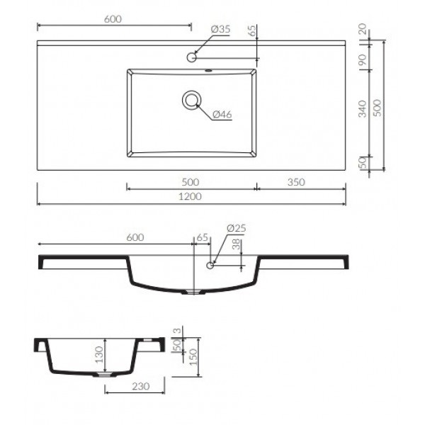 Раковина для ванної Marmorin Greta 1200 врізна з крилом литий камінь білий P_U_546_05_1200