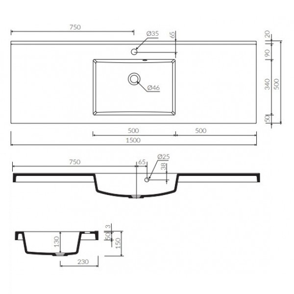 Раковина для ванної Marmorin Greta 1500 врізна з крилом литий камінь білий P_U_546_07_1500