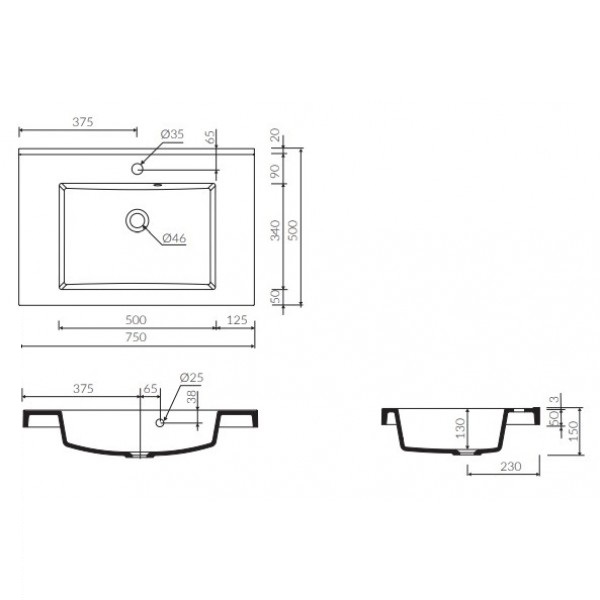 Раковина для ванної Marmorin Greta 750 врізна без крила литий камінь білий P_U_546_02_0750