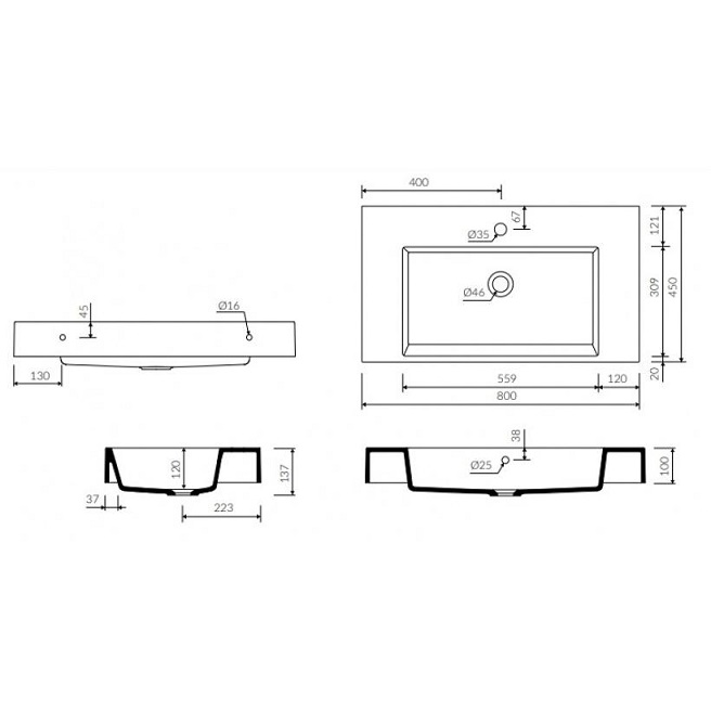 Раковина для ванної Marmorin Teo 800 накладна без крила литий камінь білий 641 080 020 xx x