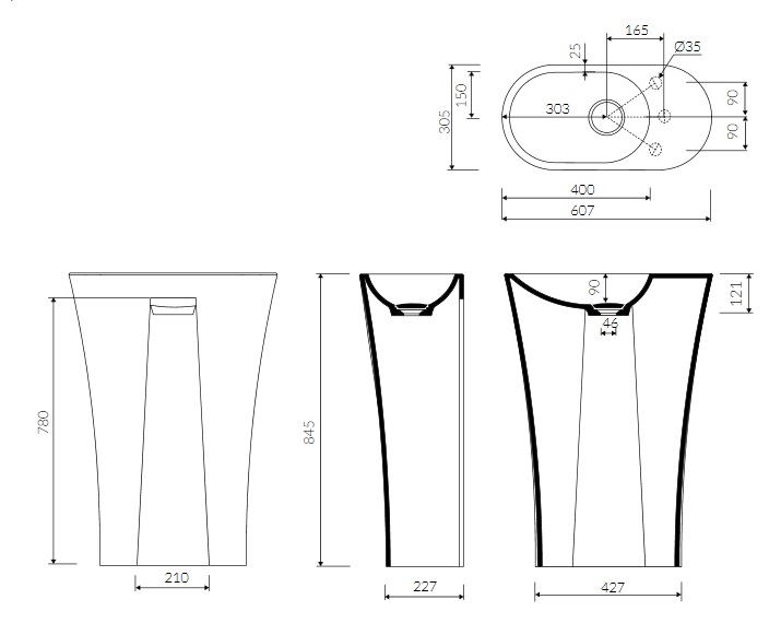 1) Раковина для ванної Marmorin Wega 60,7х30,5 см лівостороння литий камінь білий