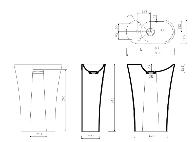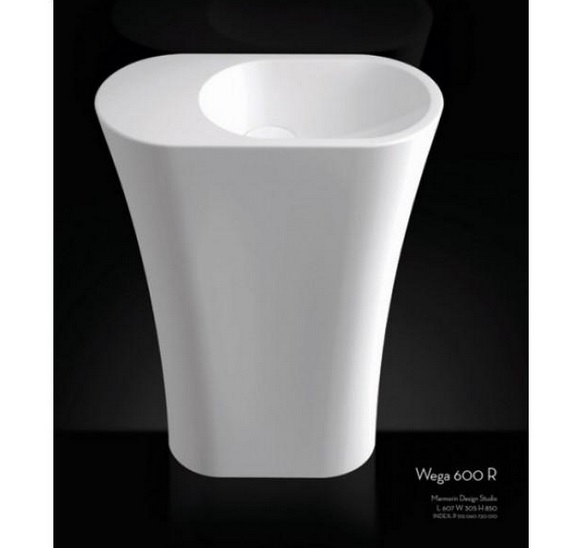 1) Раковина для ванної Marmorin Wega 60,7х30,5 см правостороння лита камінь білий